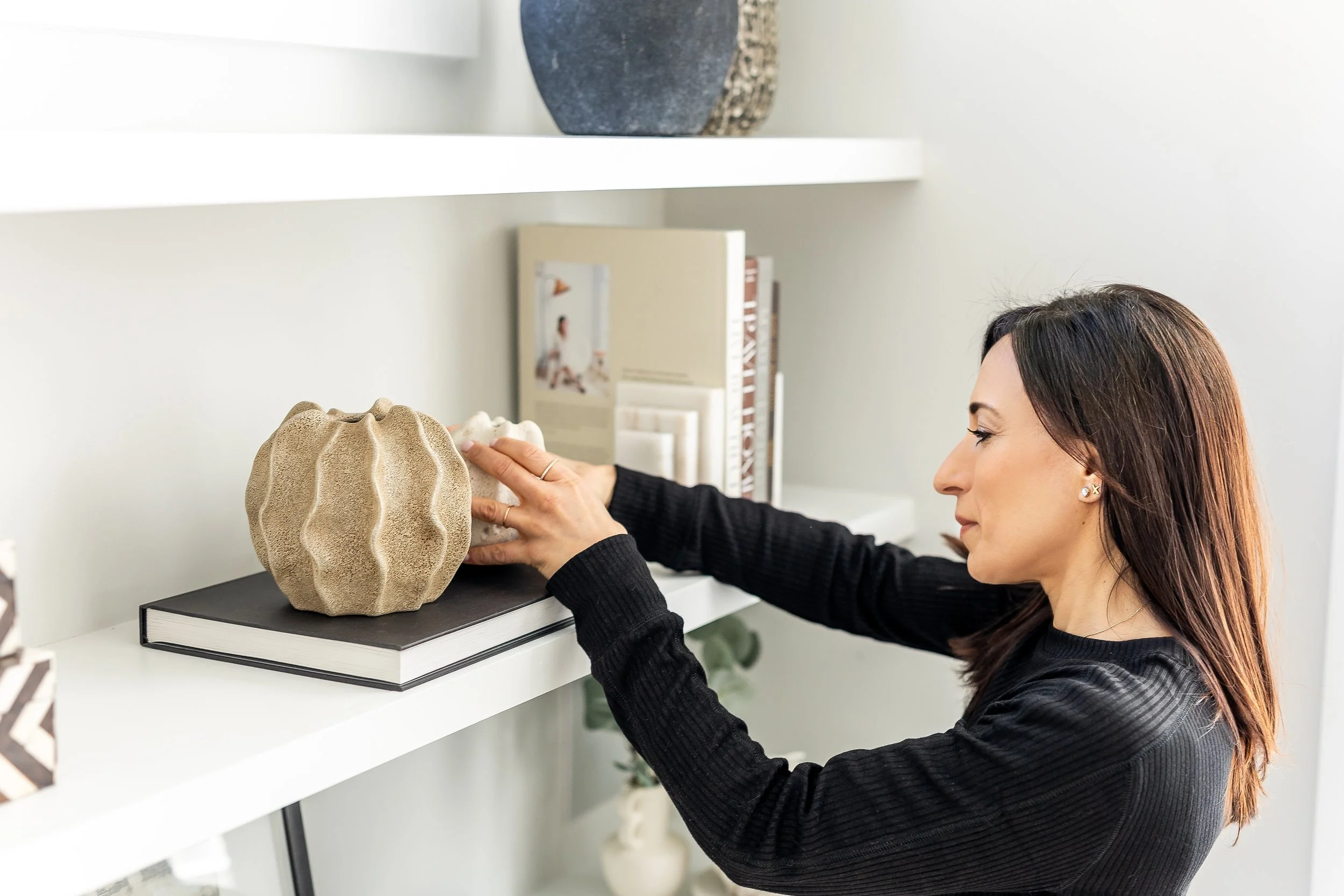 I’m Carly, the owner and founder of CarMELLA Design Studio, and I’m so thrilled that you’re here. I founded CarMELLA Design Studio with a clear mission: to help you declutter your space (and your mind), create simple, easy-to-maintain systems, and style the spaces where you spend the most time in a way that reflects your lifestyle. Whether it’s your home, business, or daily life, my team and I are committed to creating custom solutions that turn chaos into simplicity. I’m excited to connect with you and understand your unique needs so we can help you focus more on what truly matters to you.