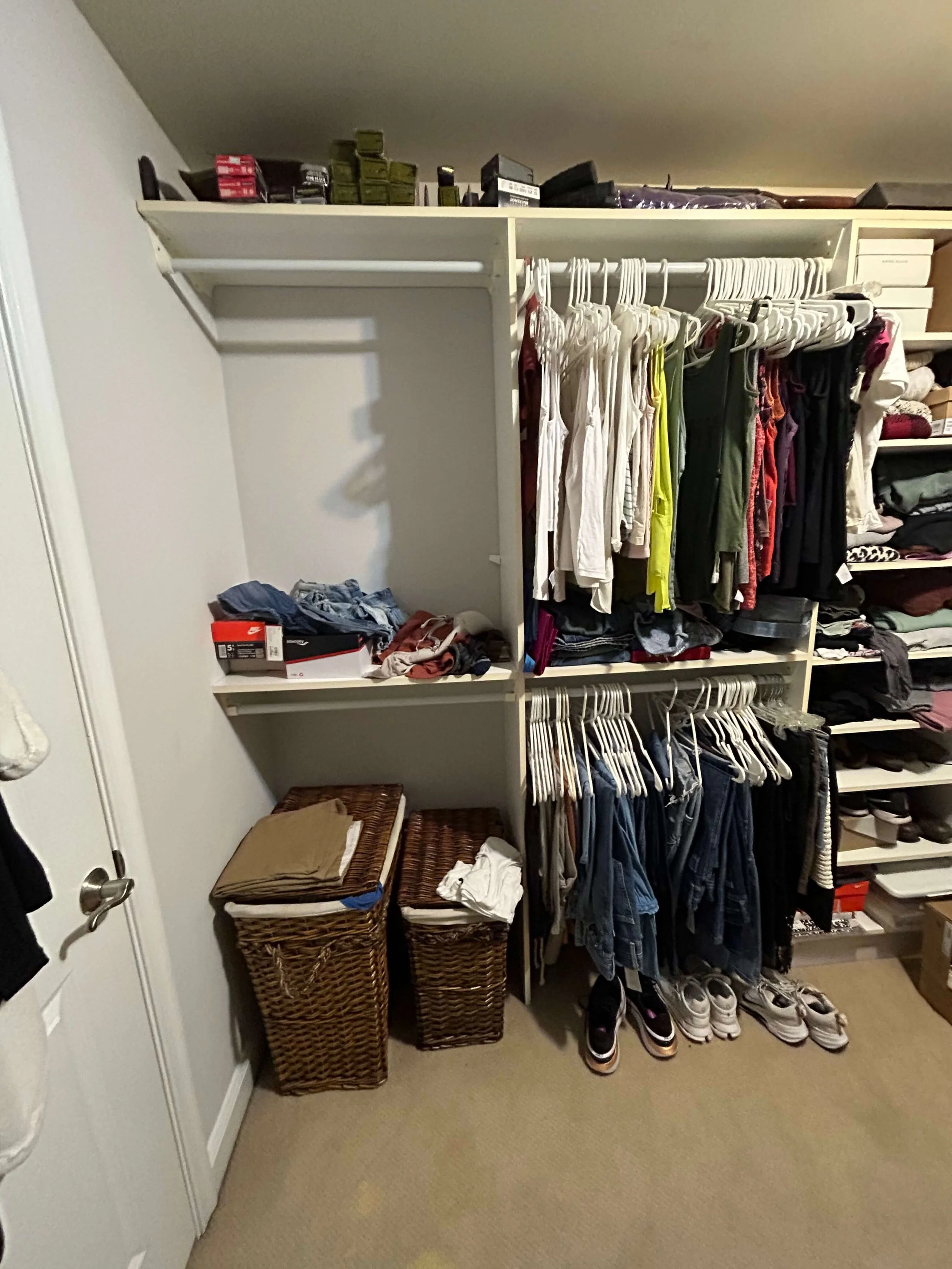 When organizing any space, our top priority is to make the space functional in a way that can be maintained long after we’ve left, so we always make sure that we understand what’s important to each individual client and what their priorities for the space are. For this project, accessible laundry baskets and a dedicated “in-between” space for clothes that weren’t quite ready to be washed but didn’t need to be put away were both key priorities. Our client was closely involved in the decluttering process and in choosing the organizer solutions, ensuring that every detail we added to the space met her needs, fit her lifestyle, and made her daily routine easier.