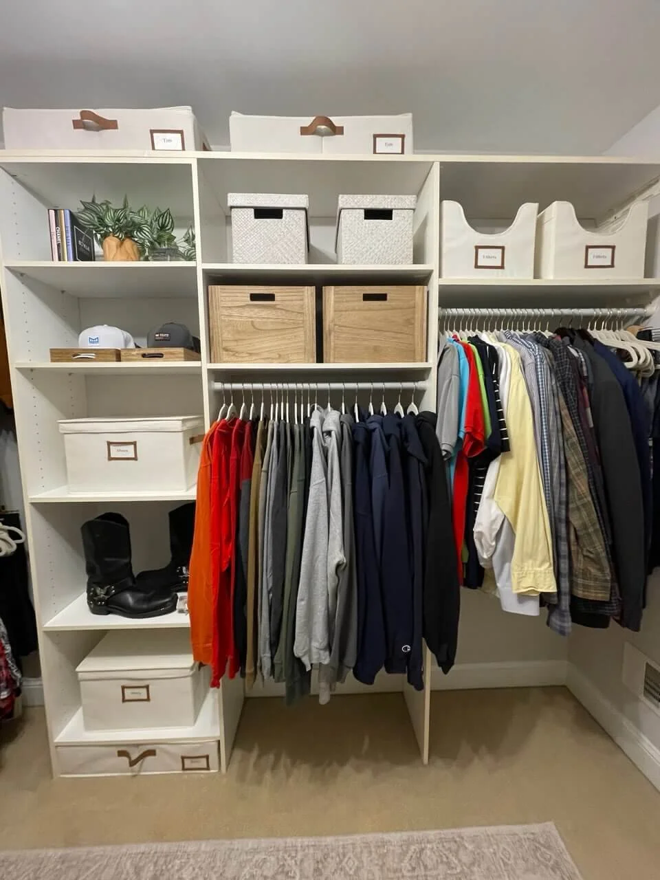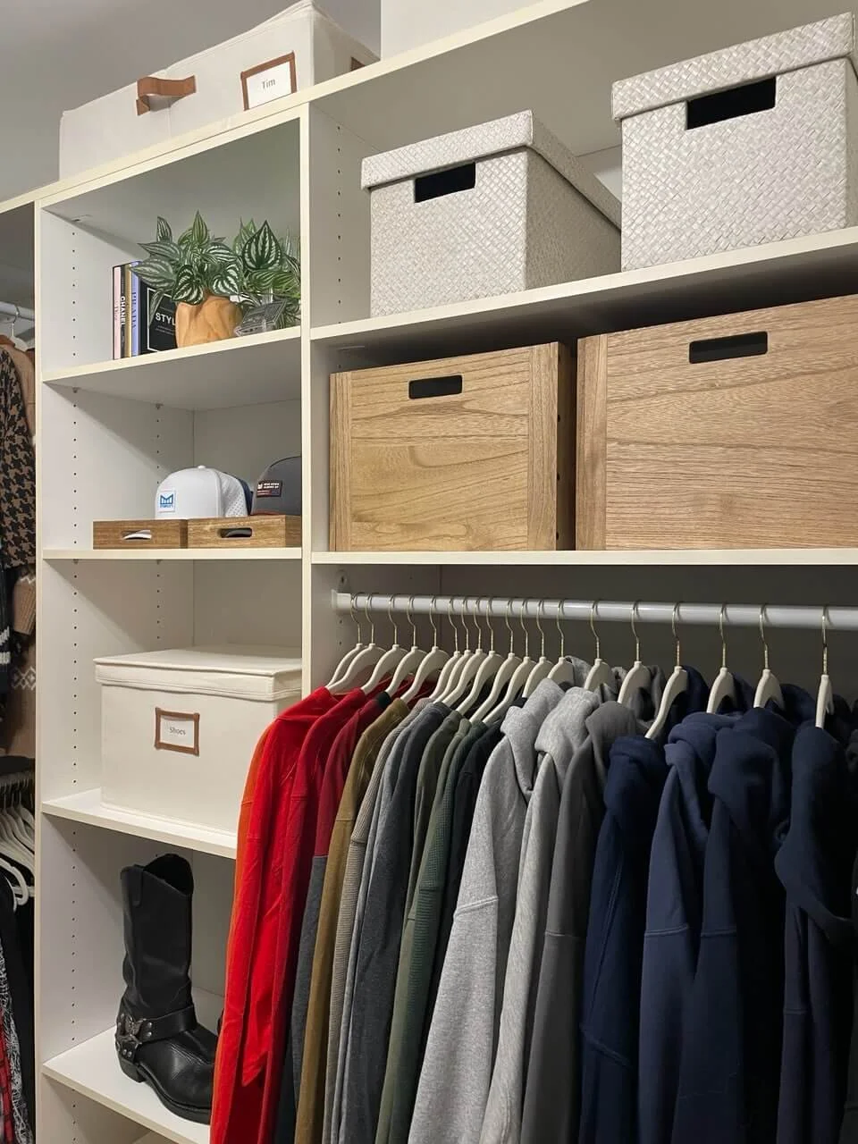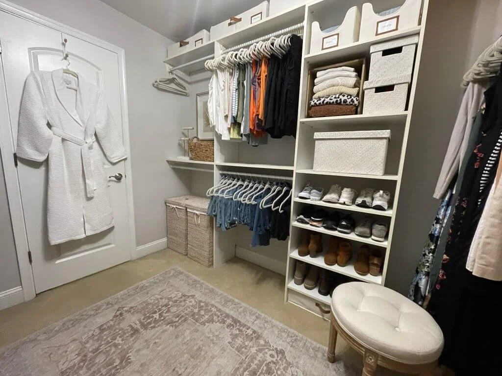 The transformation came together beautifully and quickly, proving that even small changes—like upgrading storage, investing in new hangers, and color-coding clothes—can make a huge impact on both the appearance and the functionality of any space.